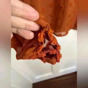 SHEIN Orange Blouse with Pom Poms and a Singapore Collar Size Lg.