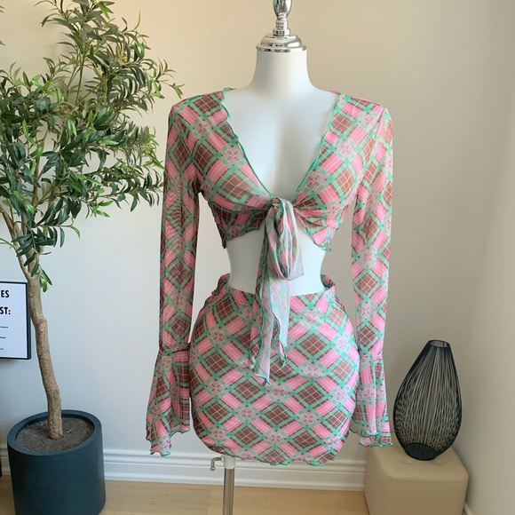 Brand new SHEIN plaid mesh two-piece set.