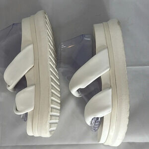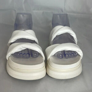 SHEIN Platform Padded Chunky Slides White Faux Leather Twist Strap Sandals 9