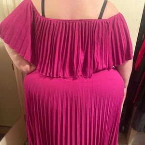 SHEIN Plus-Size Pleated Off Shoulder Strapless Maxi Dress, Magenta, Size 5X