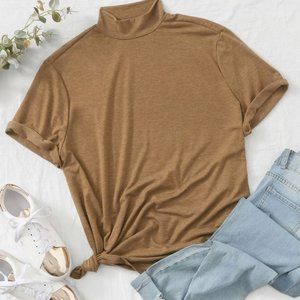 SHEIN Plus-Sized Turtleneck Short Sleeve Top Beige