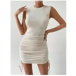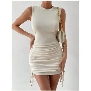 SHEIN Privé Drawstring Side Ribbed Knit Bodycon Dress