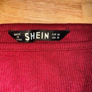 This striking red tank top from SHEIN is designed with a fitted, cropped silhouette and a classic scoop neckline. The wide shoulder straps and stretchy fabric offer a comfortable and flattering fit, perfect for any casual occasion.