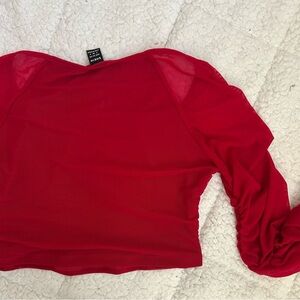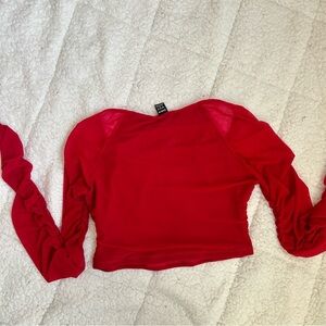 This striking red crop top from SHEIN combines a chic ruched design with a cropped silhouette, making it a standout piece for any occasion. The long sleeves and fitted style offer a sleek and modern look, while the scoop neckline adds a touch of elegance. Perfect for elevating your wardrobe with a bold and fashionable statement.