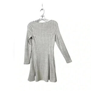 SHEIN, Ribbed Striped Skater Dress With Long Sleeves, Medium / US 6, Grey
