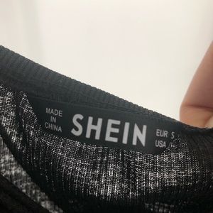 SHEIN Ruffle Cuff Tie Neck Rib-Knit Tee