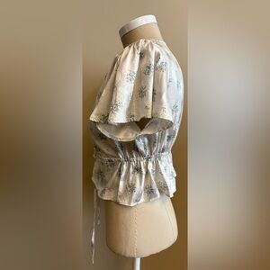 SHEIN Silver Blue White Floral Tie Front Short Sleeve Crop Top women's size M