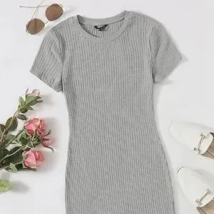 SHEIN Solid Rib-Knit Bodycon Dress