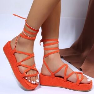 SHEIN - Suede Criss Cross Strappy Wedge Sandals