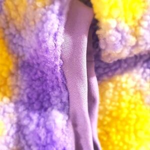 SHEIN TEDDY JACKET TIE-DYE ZIP-UP FUZZY MULTICOLOR PURPLE YELLOW WOMENS SIZE 6