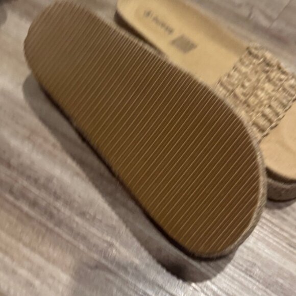 Stylish tan espadrille slides. Woven upper for a casual look. Perfect for everyday wear. Never worn