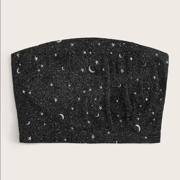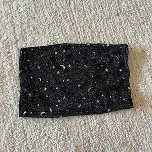 Sparkly black tube top with stars and moons Size small Perfect condition