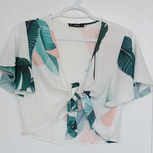 SHEIN Two Piece Palm Leaf Print Crop Top and Shorts