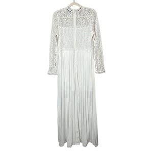 SHEIN White Cotton Nylon Blend Pleated Wedding Dress w/ Lace Bodice & Sleeves S
