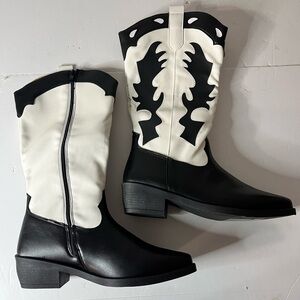 SHEIN Women’s Black & White Western Cowboy Boots Size 9