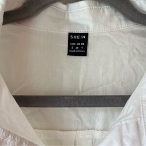 Classic and crisp SHEIN white button down shirt for women, size small. Features a collared neckline, long sleeves with button cuffs, and a clean hidden button placket for a sleek look. Made of 100% cotton — lightweight, breathable, and perfect for work, casual layering, or minimalist chic outfits. Gently worn, in great condition. Measurements included in photos.