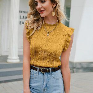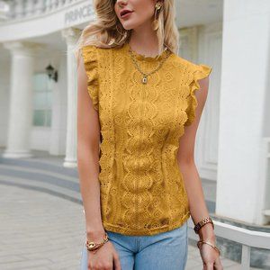 SHEIN Yellow Ochre Lace Top Size L | SHEIN Top en dentelle Ocre Jaune Taille L