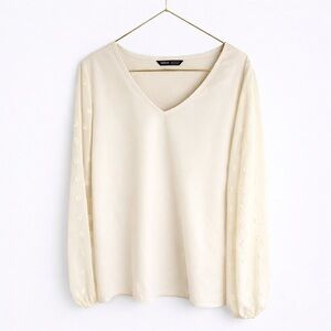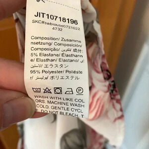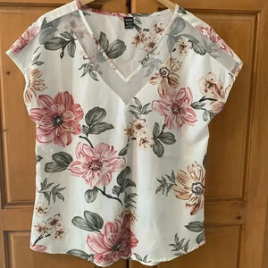 Pretty floral V neck with sheer fabric at neckline. Size Small. In excellent condition.