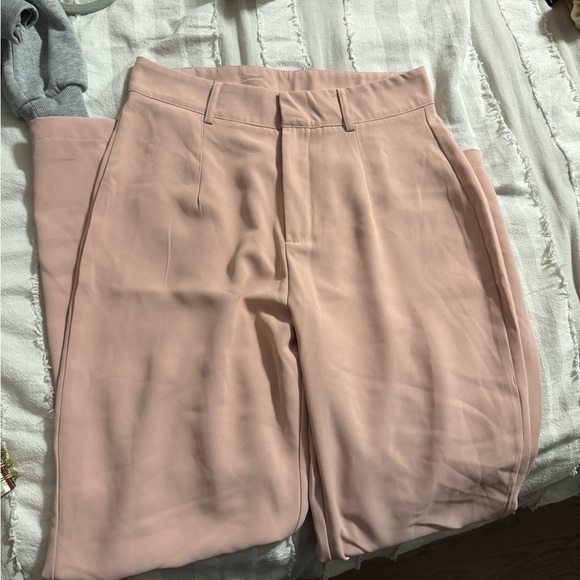 Elegant blush pink pants. High-waisted design. Versatile and chic.