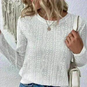 SHEIN large long sleeve shirt eyelet white blouse crewneck