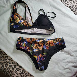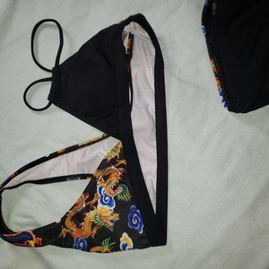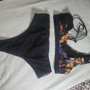 NWOT Brand new, Never worn (got it as a gift, and its not my style) high waist bottoms, top is like a half n half, with one side being a black triangle top, and the other side being like sports bra style top, in the colour print.