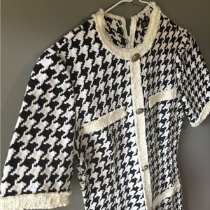 SHEIN size XS, Elegant Black and White Houndstooth Dress, mini, fitted, zipper