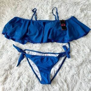 SHEKINI Off The Shoulder Sexy Low Waist Padding Bikini Two Piece Swimsuit Blue