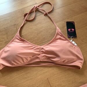 Halter tie bikini top, V neckline with ruched detailing at front. Lace up design, provide adjustable string for perfect fit.