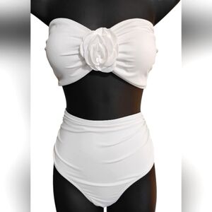 Features: 2 piece swimsuits for women, strapless, flower bikini, ruched, high waisted bathing suit