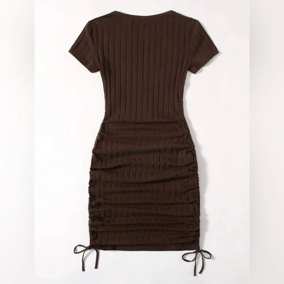 SHIEN Drawstring Side Rib-knit Bodycon Dress