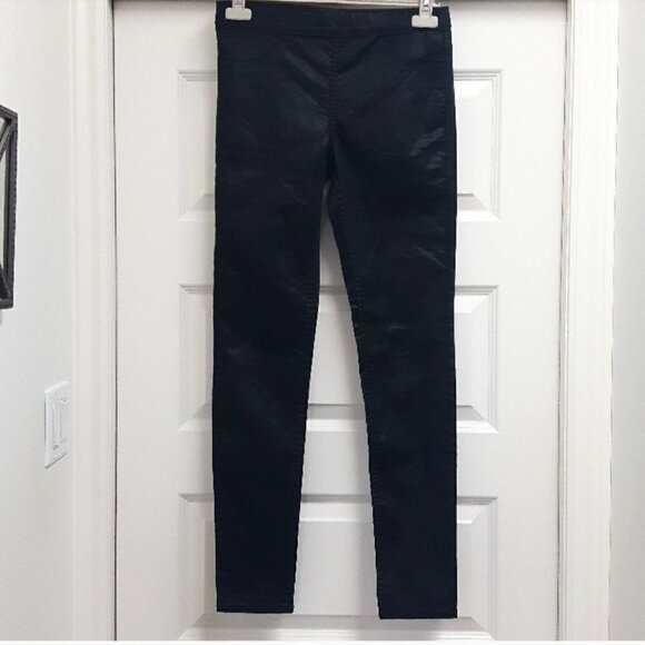 BLACK SHINY LUSTROUS WETLOOK H&M SKINNY JEGGINGS PANTS Elastic waist Size 8 Waist 28" Rise 9" Inseam 30"