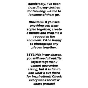 STYLING: In my shares, you will see full outfits styled together. I cannot guarantee sizing, but it is fun to see what’s out there for inspiration!! Check every week for NEW share groups!