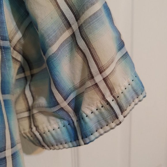 REDSQUAD short sleeve shirt, size 17-17 1/2 (XL). 100% cotton with snap up front, pockets and subtle decorative stitching.