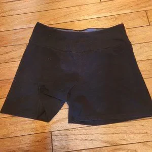 High rise waist w/ anti-slip (11") Inseam: 5" Waist: 16" - 18" Can almost pass as a mini skirt Great condition