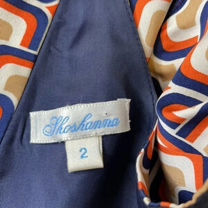 Ladies multi coloured Shoshanna 100% silk geometric retro print v-neck empire waist dress. Back hidden zipper.