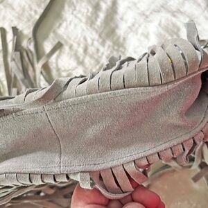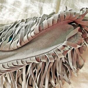 SHOULDER BAG, ASOS SUEDE LEATHER, LT GREY, COLOURED SUEDE LACE ACCENTS, STRAP