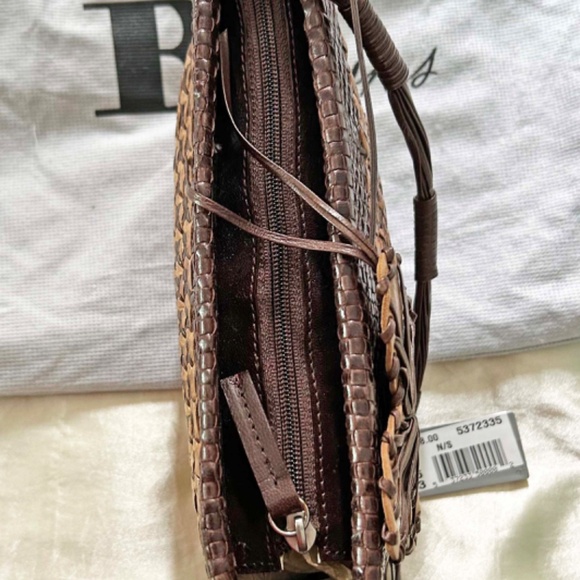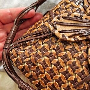 DETAILS: Woven leather with leather flower. Mirror in Browns leather, 3 x 2 inches.