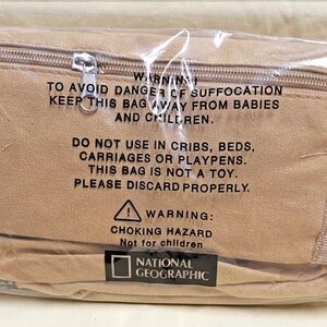 SHOULDER BAG, CANVAS, NATIONAL GEOGRAPHIC, TAN AND BLACK, ZIPPERED POCKETS, LONG STRAP, IN BAG WITH ORIGINAL SEAL NOT OPENED, NEW NEVER USED, NO DAMAGE