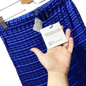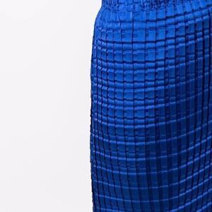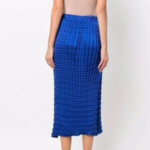 SID NEIGUM Double Box-Pleated Skirt Indigo. Indigo blue double box-pleated skirt from Sid Neigum featuring box-pleat design, textured finish, high-waisted and knee-length.