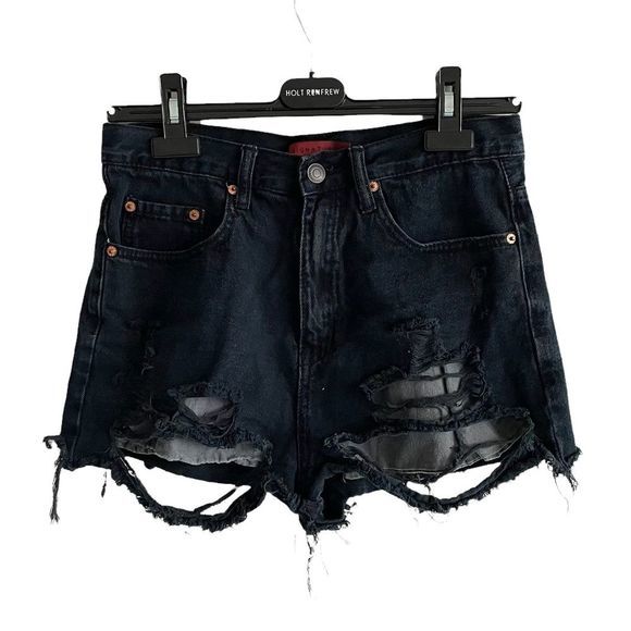 SIGNATURE 8 High Waisted Cut Off Denim Jean Shorts Destruction Black M