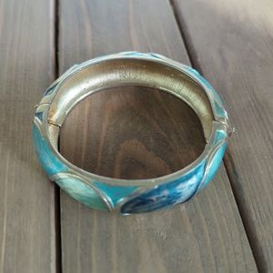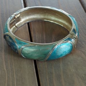 Multi-colour green. blue and gold metal clamper bracelet bangle.