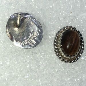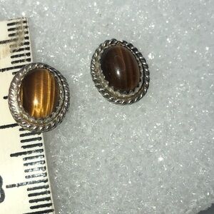 Vintage Navajo sterling silver & Tigers eye stone stud earrings.