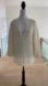 Sigrid Olson cream colour pullover sweater has an open lacy knit that looks like crochet. It has a round neck and then a plunging v at the front. Side slits and 3/4 sleeves. 57% cotton/43% polyester.