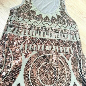 SILENT + NOISE GREEN SLEVELESS MESH SEQUINS TOP SIZE Small