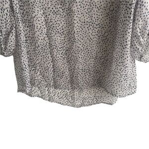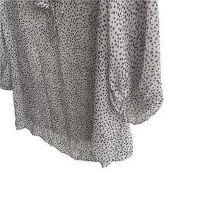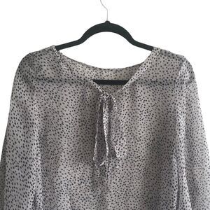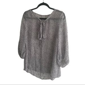 SILK Popover Printed Semi-Sheer Blouse With Tie Neck Grey Blue M