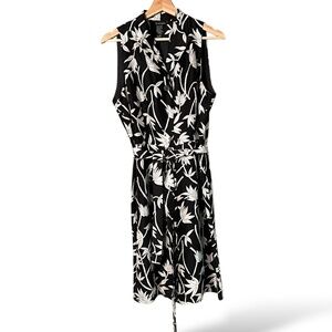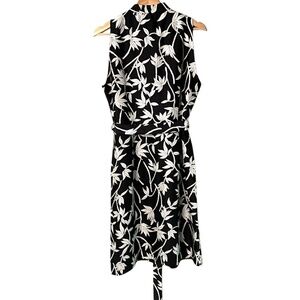 SILKLAND 100% Silk Black White Floral Print Midi Shirt Dress Fully Lined Sz 12