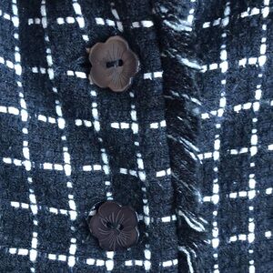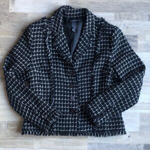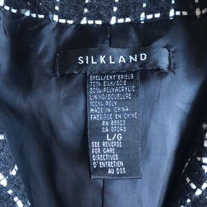 SILKLAND Women's Blazer Black and White Size Large Preppy Silk Button Up