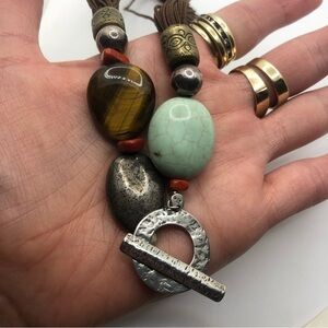 Retired Silpada N1891 Sterling Silver 925 Brown Cord Howlite Pyrite Tiger Eye Necklace