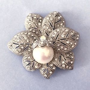 SILVER AND PEARL BROOCH/SCARF CLIP