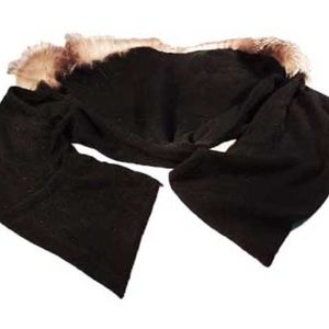 SILVER FOX TRIM HOODED SCARF 40% ANGORA 20% WOOL, TAG ON, BLACK, ONE SIZE, LONG